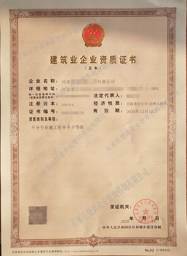 不分等級(jí)勞務(wù)資質(zhì)辦理成功案例電子版