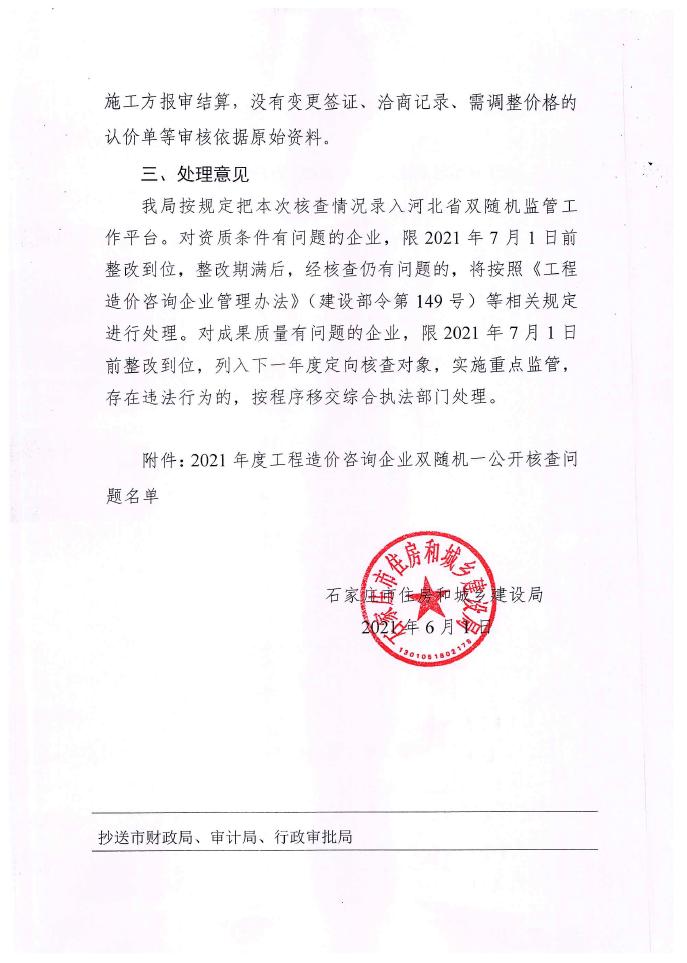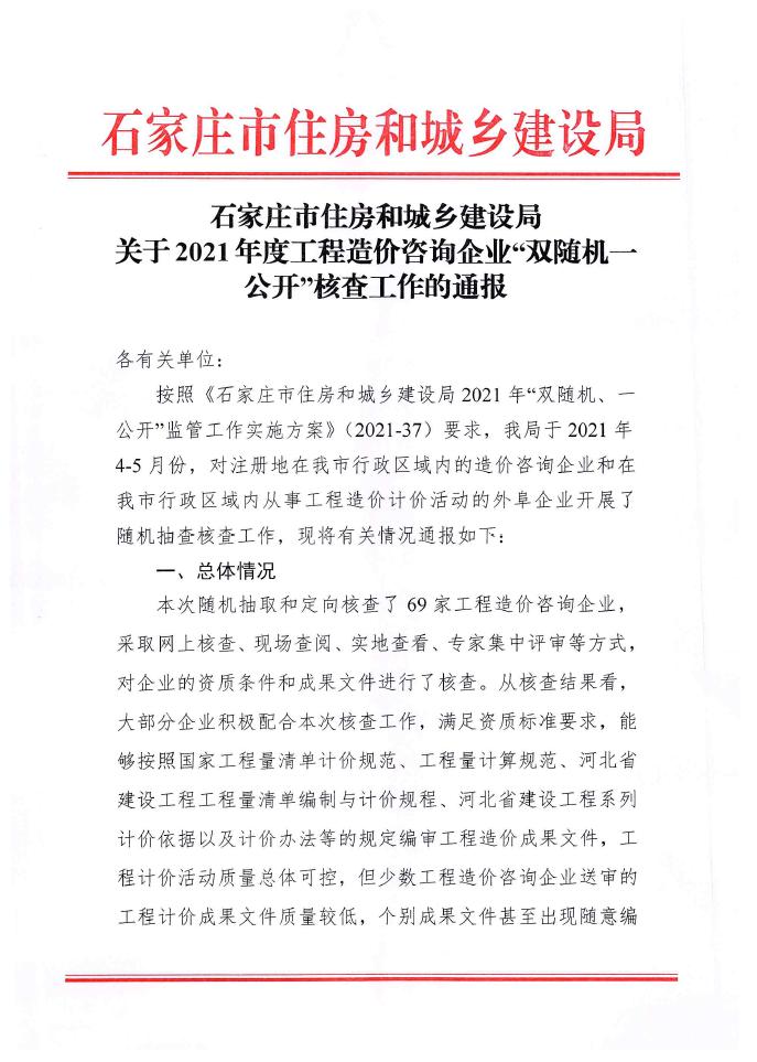 2021年度工程造價(jià)咨詢企業(yè)“雙隨機(jī),一公開”核查工作情況的通報(bào)