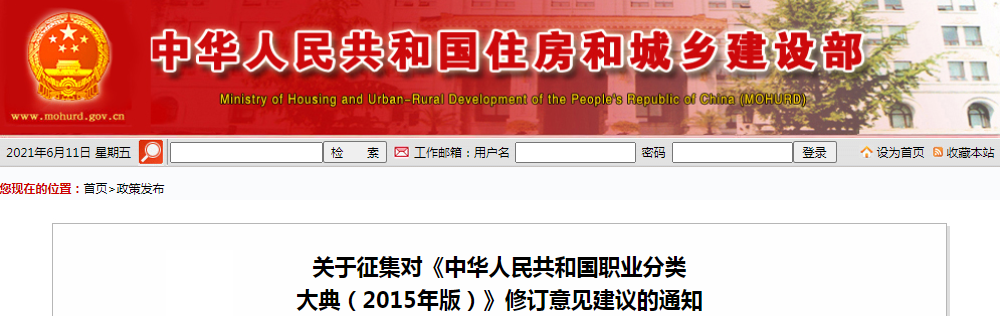 住房和城鄉(xiāng)建設(shè)部征集對(duì)《中華人民共和國(guó)職業(yè)分類大典(2015年版)》的修訂意見建議